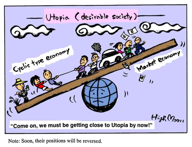 Bob – this is the tricky part, isn’t it. We have to change some important narratives. The very rich are so well organised, and they have the money to pay the PR institutes to repeat the main narratives as much as they like. You are doing a good job in making alternative narratives. We “just” need many more to join. I actually think that the Donald is a good tool to use. He is an embarrassment to all conscious people in the western culture. He gives us a mirror to take a good look at ourselves.. This is the prototypical western man! Or is it? If we don’t want to be portrayed as the Donald, we have to do something about it. There is no ready recipe. The “Leap” is actually a leap into something not quite known. A point to make in this connection is that the current system leads to a fairly well known result: total breakdown and disaster. Any system not sustainable inevitably ends up in total breakdown.